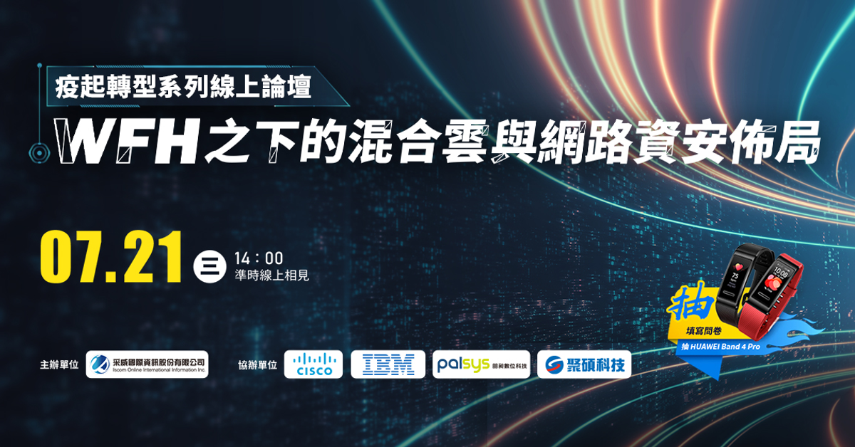自COVID-19 疫情爆發以來,遠端工作模式日漸普及,加速了企業的數位轉型,大多的企業也紛紛將服務 與應用從地端點轉往雲端上,而傳統中基礎架構為核心的安全性,已無法保證使用者在「無所不在」的雲端環境存取資料是安全的,無法有效阻擋勒索病毒及資料外洩的事件發生,為企業資訊安全帶來隱憂。 在本次論壇中,我們將與大家分享Work From Home之下如何應用混合雲架構及資訊科技,做好萬全的資安佈局提升網路使用安全,以及企業必須注意的決勝關鍵,以嶄新的思維來做好準備。 論壇邀請到產業中實戰經驗豐富的講師,帶您了解到此刻是建立全新資安架構的關鍵時刻,不但能讓您超前佈署,更能讓投資的效益達到最大化。自COVID-19 疫情爆發以來,遠端工作模式日漸普及,加速了企業的數位轉型,大多的企業也紛紛將服務 與應用從地端點轉往雲端上,而傳統中基礎架構為核心的安全性,已無法保證使用者在「無所不在」的雲端環境存取資料是安全的,無法有效阻擋勒索病毒及資料外洩的事件發生,為企業資訊安全帶來隱憂。 在本次論壇中,我們將與大家分享Work From Home之下如何應用混合雲架構及資訊科技,做好萬全的資安佈局提升網路使用安全,以及企業必須注意的決勝關鍵,以嶄新的思維來做好準備。 論壇邀請到產業中實戰經驗豐富的講師,帶您了解到此刻是建立全新資安架構的關鍵時刻,不但能讓您超前佈署,更能讓投資的效益達到最大化。自COVID-19 疫情爆發以來,遠端工作模式日漸普及,加速了企業的數位轉型,大多的企業也紛紛將服務 與應用從地端點轉往雲端上,而傳統中基礎架構為核心的安全性,已無法保證使用者在「無所不在」的雲端環境存取資料是安全的,無法有效阻擋勒索病毒及資料外洩的事件發生,為企業資訊安全帶來隱憂。 在本次論壇中,我們將與大家分享Work From Home之下如何應用混合雲架構及資訊科技,做好萬全的資安佈局提升網路使用安全,以及企業必須注意的決勝關鍵,以嶄新的思維來做好準備。 論壇邀請到產業中實戰經驗豐富的講師,帶您了解到此刻是建立全新資安架構的關鍵時刻,不但能讓您超前佈署,更能讓投資的效益達到最大化。